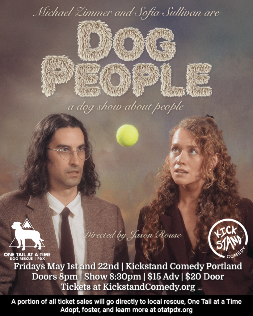 Michael Zimmer and Sofia Sullivan are Dog People. The show dives snout first into our complex relationship with dogs in an hour of sketches, characters, and videos. From pet psychics to vet logistics, new tricks, and old treats, Dog People explores the comedy of the day to day odd behaviors that come with being the best friends to man’s best friend, with all the absurdity, chaos, and love. Woof.